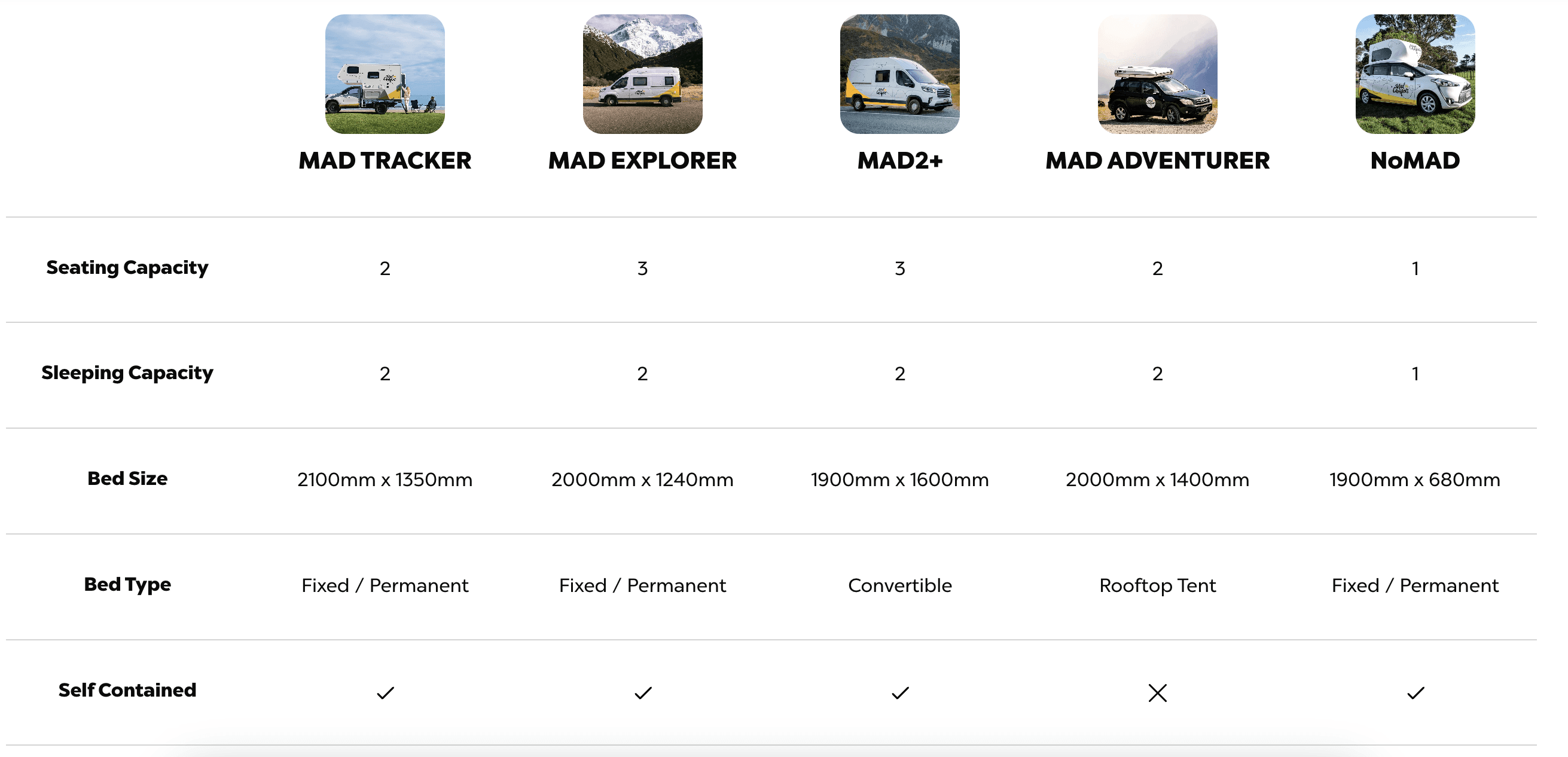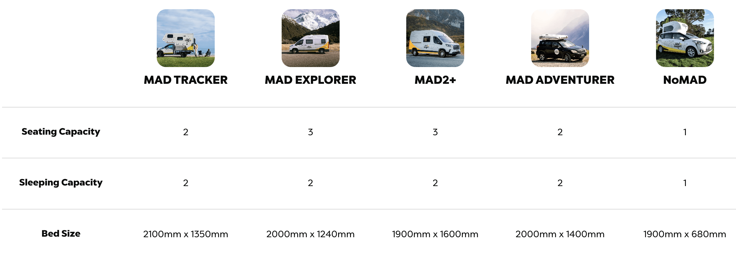 Experience all New Zealand has to offer in one of our Mad Campers. We've got the most innovative campers on the market allowing you to go wherever you want in comfort... and at whatever pace you desire.